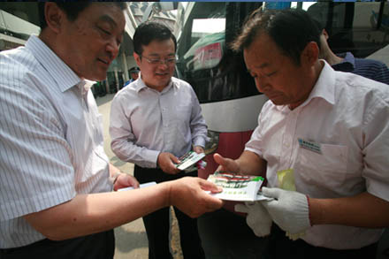 您現在的位置是:首頁 > 集團要聞 節能宣傳周啟動儀式在濟南長途汽車總站隆重舉行 次 集團要聞 發布時間:2011-06-14 09:46:20 節能宣傳周啟動儀式在濟南長途汽車總站隆重舉行 2011年6月11日上午,由山東省交通運輸廳主辦的“2011年全省交通運輸節能宣傳周暨營運駕駛員百日節能駕駛勞動競賽”啟動儀式,在濟南長途汽車總站東廣場隆重舉行。來自省交通運輸廳、省節能辦、市交通運輸局的有關領導出席了活動,并在發車現場向客車駕駛員發放節能駕駛手冊等宣傳資料。集團公司總經理、黨委副書記王謙出席活動并講話。 (資產技術部、組宣部)