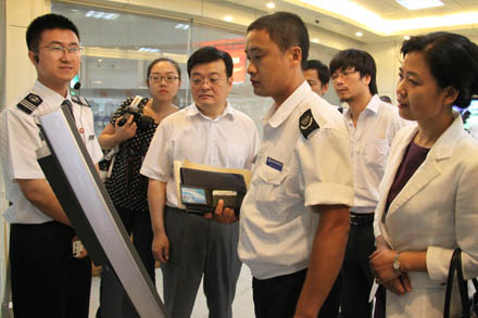 在集團公司總經理、黨委副書記王謙、黨委副書記楊國強等領導的陪同下,全國青聯委員會委員一行先后視察了總站候車大廳、服務臺、售票處、檢票處、駕駛員報班處和安全運營管理監控中心。在總服務臺,各位委員對各項便民創意服務舉措頗感興趣;在報班處,他們親身感受了人臉識別系統、酒精檢測儀等測試效果;在安全監控中心,聽取了王謙總經理關于3G 視頻監控系統運行情況的詳細介紹,并在總站二樓會議室與集團公司及車站領導進行了交流溝通。