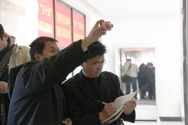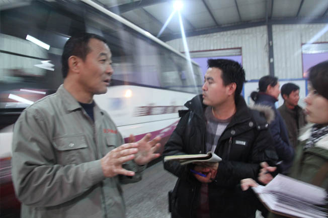 在濟(jì)南長(zhǎng)途汽車總站,大家參觀了售票處、檢票處、報(bào)班處、兔兔快運(yùn)及集團(tuán)公司監(jiān)控管理中心,體會(huì)到了總站員工熱情高漲的工作狀態(tài)、整潔有序的辦公環(huán)境,嚴(yán)緊而又人性化的創(chuàng)新管理辦法,以及集團(tuán)公司規(guī)范高效的安全管理信息系統(tǒng);濟(jì)宇高速則充分展示了他們獨(dú)具特色的企業(yè)文化、鮮活的培訓(xùn)教育,高端創(chuàng)新業(yè)務(wù)開發(fā)以及安全管理十二法等工作亮點(diǎn)。其中駕駛員賈湘鳴安全行駛367萬公里沒有發(fā)生一次安全事故的高超技術(shù),讓隨行記者嘖嘖稱贊;在黃河航運(yùn)局,采訪小組參觀了洛口浮橋、齊河造船廠、感受了黃河航運(yùn)局承建的新式游船,大家感嘆黃航人將浮橋建到中俄、中朝邊境、開發(fā)水上旅游項(xiàng)目等創(chuàng)舉,讓造船業(yè)這門“老手藝”煥發(fā)出新活力,同時(shí)更感受到他們不屈不撓、勇于開拓的拼搏精神;在濟(jì)南西客站綜合客運(yùn)樞紐施工工地,采訪組了解到,為確保工程質(zhì)量,建造細(xì)節(jié)精確到公廁所里一堵墻的厚薄,人性化設(shè)計(jì),點(diǎn)滴細(xì)微到導(dǎo)乘牌、空調(diào)的設(shè)計(jì)位置,那緊鄰嘈雜工地的簡(jiǎn)易辦公板房,那為保證工期經(jīng)常加班至深夜的員工以及他們?nèi)鐢?shù)家珍般介紹工程進(jìn)度情況的興奮神情,都深深打動(dòng)了每一位成員,聚影小組的鏡頭紛紛對(duì)準(zhǔn)管理人員和工人們忙碌的身影;在交運(yùn)物流,大家對(duì)LNG?;愤\(yùn)輸工作興趣十足,圍在LNG?;愤\(yùn)輸車旁,不停地提問、拍照,了解其發(fā)展方向及安全性能,感嘆“物流鐵軍”遠(yuǎn)赴新疆,安全運(yùn)送的艱辛,贊嘆其超前的市場(chǎng)定位及大有可為的市場(chǎng)前景,期待再添新運(yùn)力,拓展新業(yè)務(wù)的好消息;在兔兔快運(yùn),倉庫中有序擺放著各種貨物,公司樓下整齊停放著通勤班車,在職工食堂,員工笑意盈盈吃著“免費(fèi)午餐”,一幕幕場(chǎng)景,讓大家不由深深感受到多年來積極穩(wěn)定的發(fā)展,讓“兔兔”職工們擁有了極高的“幸福指數(shù)”和“理想指數(shù)”,而這一切又折射到工作中,形成了高效的執(zhí)行力;在汽車修理廠保險(xiǎn)理賠大廳,記者們?cè)敿?xì)詢問了在便民、惠民等方面為廣大市民提供的各項(xiàng)措施以及理賠知識(shí),觀看了修理廠一輛被損私家車從維修到噴漆后煥然一新的變化過程,稱贊其優(yōu)良的修理技術(shù)和嚴(yán)格規(guī)范的動(dòng)作流程;在保修廠安全檢測(cè)線,成員們對(duì)檢測(cè)程序中涉及的各種專業(yè)術(shù)語和檢測(cè)注意事項(xiàng)刨根問底,為他們頂住壓力,不為任何不合格車輛“開后門”的堅(jiān)定立場(chǎng)豎起大拇指!