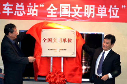 2012年1月18日,省文明辦、省國資委文明辦共同在山東交運(yùn)集團(tuán)濟(jì)南長途汽車總站舉行“全國文明單位”揭牌儀式,省文明辦副主任、活動(dòng)協(xié)調(diào)處處長宮松章,活動(dòng)協(xié)調(diào)處科長張?jiān)品澹Y委黨委宣傳與群眾工作部部長胡兵,調(diào)研員張慶旭,集團(tuán)公司董事長、黨委書記吳宗昌、總經(jīng)理、黨委副書記王謙,黨委副書記楊國強(qiáng)出席了揭牌儀式。