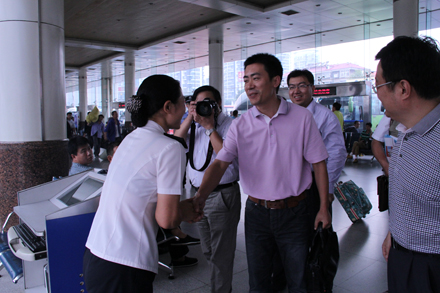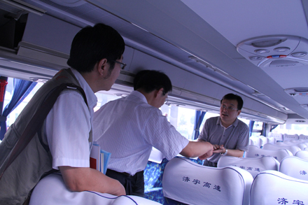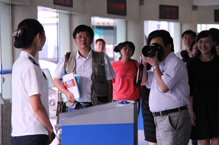 媒體記者逐一參觀了濟南長途汽車總站,零距離體驗了駕駛員人臉識別、酒精檢測、車載GPS、3G視頻等車站源頭安全管理和班車實時動態(tài)監(jiān)控情況;深入檢票一線和班車發(fā)車區(qū),與黨的十八大代表、山東省勞模李文親切交流;登上LNG清潔能源高級商務(wù)車,向安全行車370萬公里“零事故”駕駛員、省勞模賈湘鳴,詳細了解安全運營節(jié)能情況;在96369服務(wù)熱線、總服務(wù)臺、“英語崗”、“女士購票窗口”等特色服務(wù)崗位,體驗了電話預(yù)約售票及特色服務(wù)流程。在接下來的座談中,王謙總經(jīng)理詳細介紹了集團各產(chǎn)業(yè)板塊近年來不斷發(fā)展的基本概況、商業(yè)模式創(chuàng)新探索的效果以及今后工作的發(fā)展方向等,并對各新聞媒體關(guān)于集團戰(zhàn)略發(fā)展規(guī)劃、重點項目工程建設(shè)、不同產(chǎn)業(yè)創(chuàng)新舉措等提問進行了解答。各新聞媒體對集團公司堅持“安全十六字方針”和“人文關(guān)懷”理念,建設(shè)本質(zhì)性安全企業(yè)、在創(chuàng)新創(chuàng)效、節(jié)能減排等方面采取的有效措施以及“親情化管理,友情化服務(wù)”等方面傾注了較多關(guān)注,并提出了一些建設(shè)性的意見和建議。