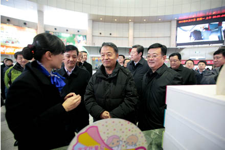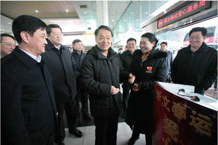 1月21日,交通運輸部楊傳堂部長及部有關領導在張建國副省長、賈學英廳長、高洪濤副廳長、江成局長的陪同下,蒞臨集團長途汽車總站視察指導春運工作,并親切看望和慰問了一線干部職工。集團吳宗昌董事長、王謙總經理等相關領導陪同視察。