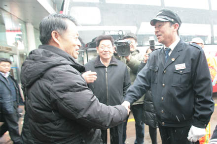 在視察中,楊傳堂部長還慰問了集團“安全行車三百六十萬公里無事故”駕駛員標兵賈湘鳴,詳細詢問安全行車經驗和發車前安全告知宣傳情況;重點詢問了客運站營運客車安全例檢和臥鋪客車改造情況,對總站駕駛員安全報班處所采用的人臉識別系統、酒精檢測器、資質審查信息庫等有效技術手段,給予了高度評價。