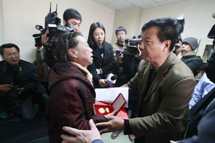 3月15日 下午,山東省總工會(huì)副主席王星海來到山大二院重癥監(jiān)護(hù)室,看望慰問宋洋母親,并向宋洋頒發(fā)了山東省富民興魯勞動(dòng)獎(jiǎng)?wù)录蔼?jiǎng)狀。