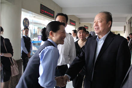 楊會長一行先后來到總站售票窗口、總服務臺、候車廳、安全報班處及集團安全運營監控中心,詳細了解總站創新服務措施,詢問各崗位工作情況,并親切慰問了車站一線員工。隨后,楊會長一行來到集團多功能廳與省交通運輸廳及集團公司領導座談交流。王謙總經理對集團近年來發展情況進行了簡要匯報。高洪濤巡視員對集團公司從保持安全運輸業績、培養大批人才及企業文化建設等方面進行了充分肯定。