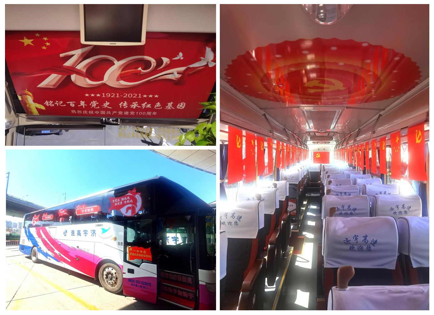 同時,濟宇高速還將車輛進行升級改造,推出“學黨史宣傳陣地”專用車輛,在十米車廂內(nèi)營造出“銘記百年黨史,傳承紅色基因”的濃厚氛圍,講述了我黨從無到有,由微及著的艱辛歷程,依托客運班車靈活、便捷的優(yōu)勢進行多形式、多角度、全方位宣傳,使“學黨史”更加接地氣、聚人氣、見效果,將“學黨史”宣傳到更多的百姓心中,引導大家準確把握開展黨史學習教育“學史明理、學史增信,學史崇德,學史力行”的目標要求,做到學黨史、悟思想、辦實事、開新局。
