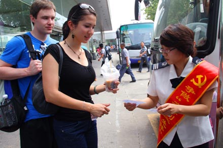 在總服務臺,總站南區雷鋒大夫魏德泉為乘車旅客提供免費義診和夏季乘車健康咨詢服務;由車站微機室、后勤科組成的電子維修組,為旅客提供免費的手機充電器,提供免費電子、電器簡單維修服務;由一線服務科室黨員組成的服務咨詢組在公交站牌、旅客中轉換乘區設立了免費咨詢服務崗,為旅客提供免費咨詢和行李運送服務,并在長廊設立了“黨員送水車”,為旅客提供免費送水服務,得到了旅客的一致好評。