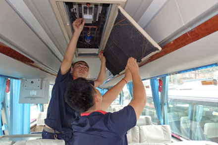 空調高效潔凈無異味 為確保車輛空調制冷性能,將空調檢查作為每日例檢必檢項,要求收車后將車內空調統一設置到