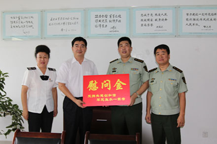 7月30日,在八一建軍節(jié)來臨之際,總站南區(qū)站長于承濤、黨委書記尹桂芳帶著全站員工對人民子弟兵的深情厚意,來到雙擁共建單位武警濟南七大隊,為戰(zhàn)士們送去節(jié)日慰問金和祝福,表達了南區(qū)全體職工對部隊官兵的崇高敬意和深切慰問,祝愿雙方以后更好地互助合作,積極探索軍企共建的新路子,全面推動部隊建設和車站安全生產工作再上新臺階,再創(chuàng)新水平。