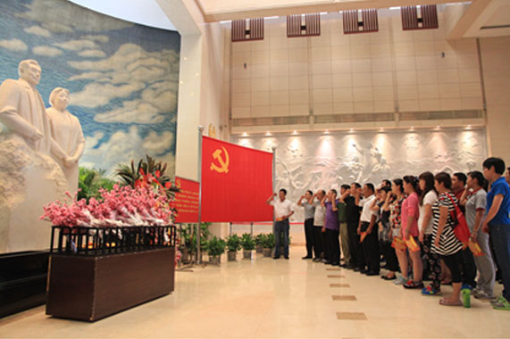 在周鄧紀念館,全體黨員及預備黨員,在黨旗和周恩來總理的塑像前,重溫入黨誓詞,讓新老黨員充分感受黨的神圣,堅定黨的信念和為共產主義奮斗終生的決心,以更加飽滿的熱情發揮共產黨員的先鋒模范作用。