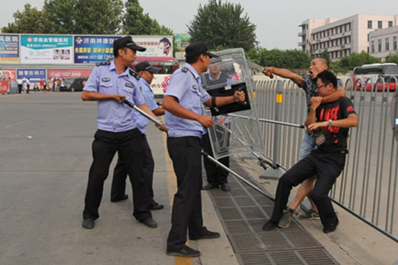 演練模擬從發現持械可疑人員進入車站開始,按照應急預案,各部門迅速進行實戰狀態,各負其責,分頭疏散現場車輛和旅客,防止次生隱患的發生。治安人員利用反恐器械合力將歹徒制服,并通過一鍵報警系統報警,配合民警將歹徒扭送至車站派出所進行處理。