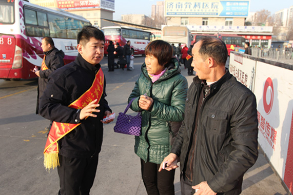 12月26日,總站南區黨委在旅客到達區針對返程旅客開展了營銷拓展活動,向到站旅客派發印有2016年全年日歷的“感恩回饋會員卡”,并在客流密集區進行班車和旅客的疏導和服務工作,確保服務區域內車流、人流暢通有序,秩序井然;同時還主動為旅客搬送貨物、引導貨物辦理業務;以優惠卡為媒介,推廣南區微信公眾平臺,幫助旅客通過微信購票,享受優惠、便捷的售票服務。