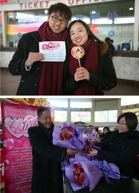 2月14日情人節(jié)來臨之際,售票處特別推出“情侶專屬優(yōu)惠”活動,凡情人節(jié)當(dāng)日到總站乘車的情侶購買同一目的地、同一班次的客票,在享受9折優(yōu)惠的同時,還可獲贈情侶專屬禮物一份;兔兔快運則推出了“214浪漫送給您”活動,憑當(dāng)日尾號為“214”的消費票據(jù),可免費獲贈包裝精美的玫瑰花一支;當(dāng)日發(fā)貨金額累計滿214元的客戶,可免費獲贈玫瑰花一束。系列活動的推出,為新春的旅程增添了一份歡樂與甜蜜。