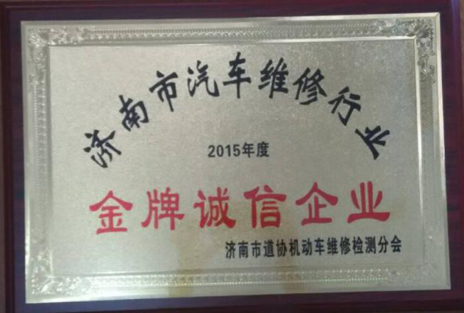 2016年6月,修理廠被濟南市道路運輸協會機動車維修檢測分會授予“濟南市維修行業2015年度金牌誠信企業”。